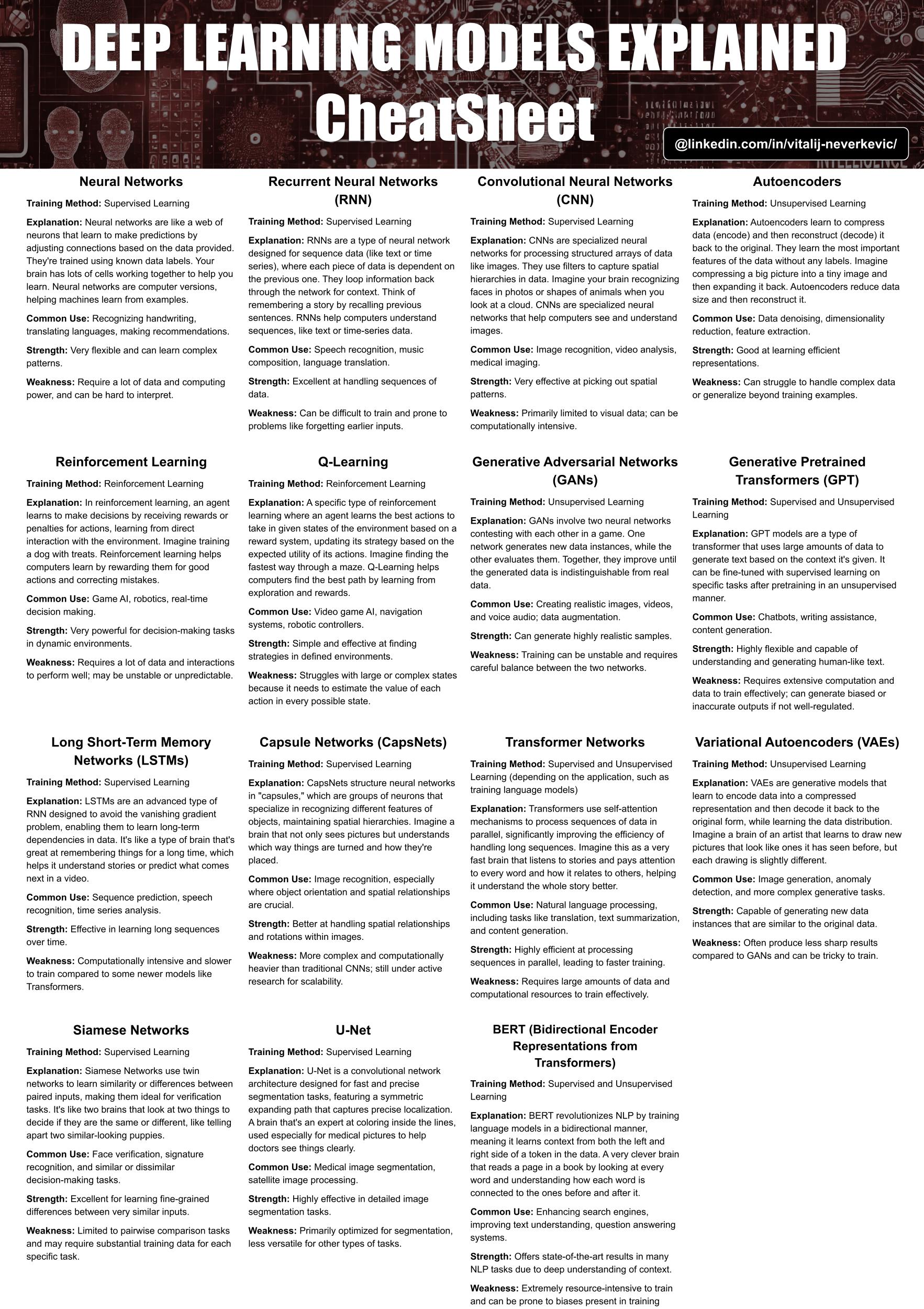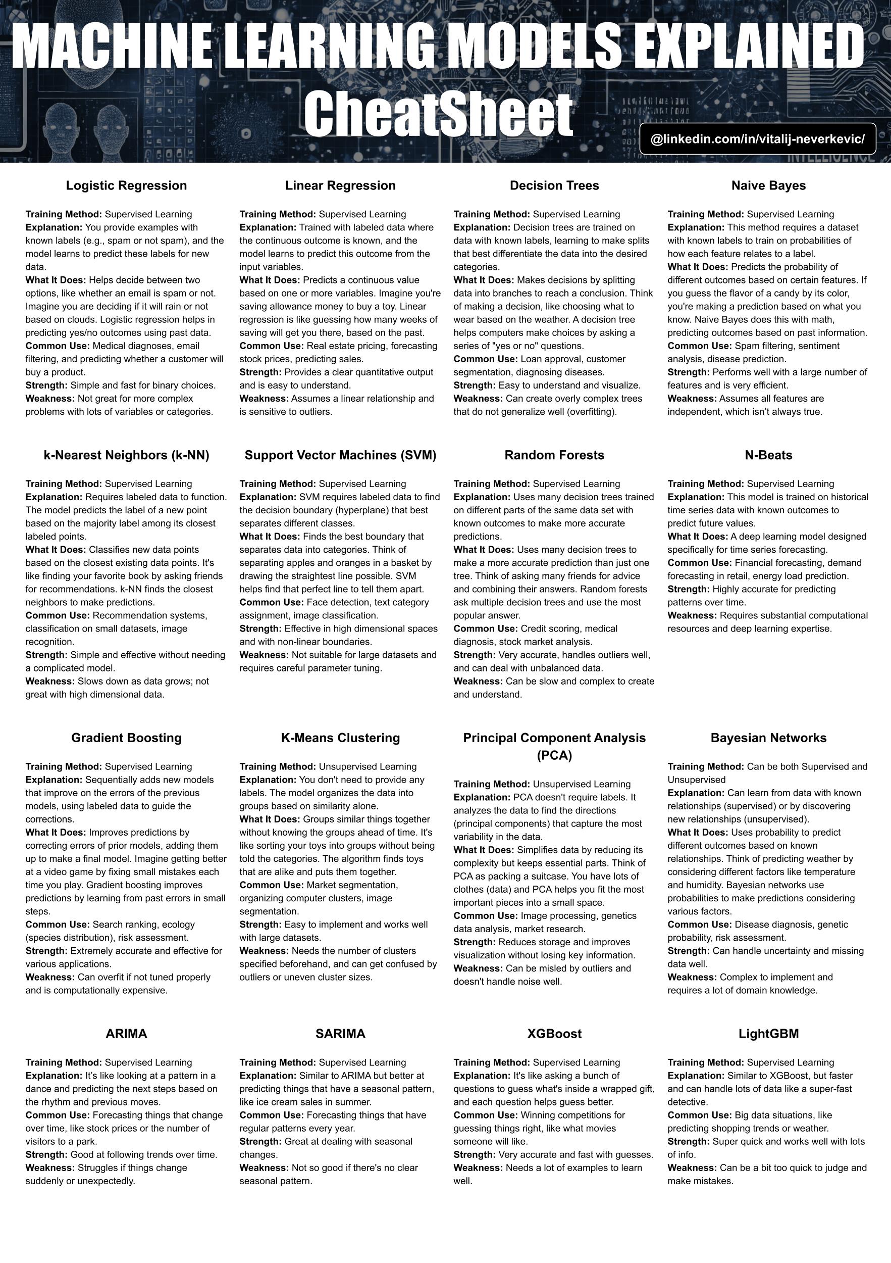 AI models Cheat Sheet with a simple explanation for non-tech audience